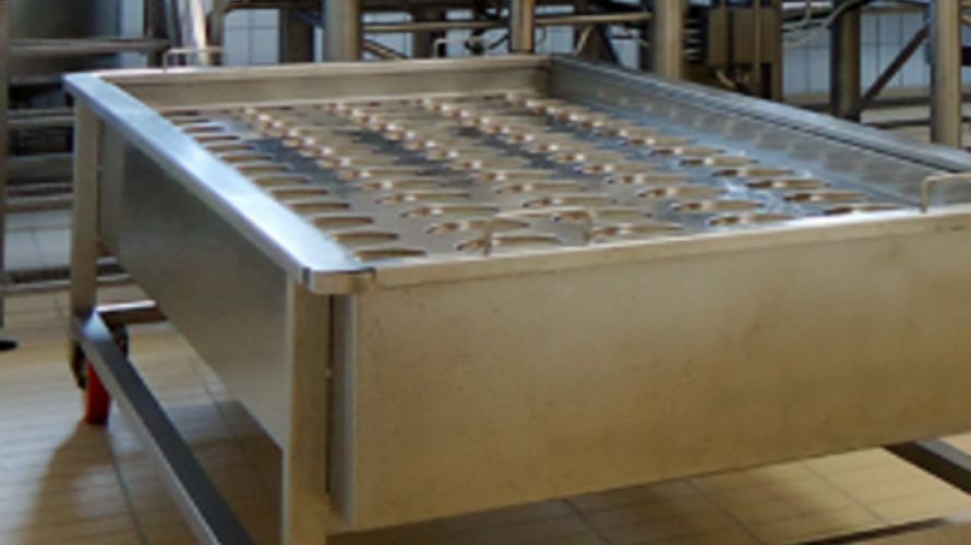 Дренажная тележка Tecnolat, полностью изготовленная из нержавеющей стали AISI 304, обеспечивает, благодаря отличному дренажу, удаление остатков сыворотки. Используется при производстве сыра Паста Филата. Нижняя и боковая части имеют перфорированная секции. Габариты: 3000 х 1500 мм; Высота 850 мм; Глубина: согласно прессформам (примерно 450 мм); Установлена на колесах.